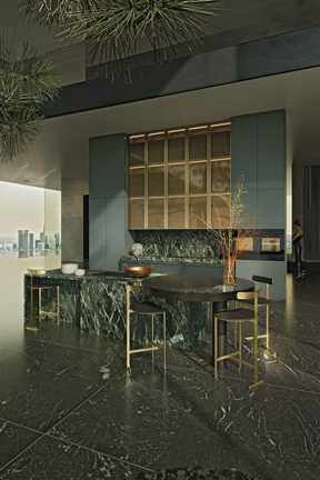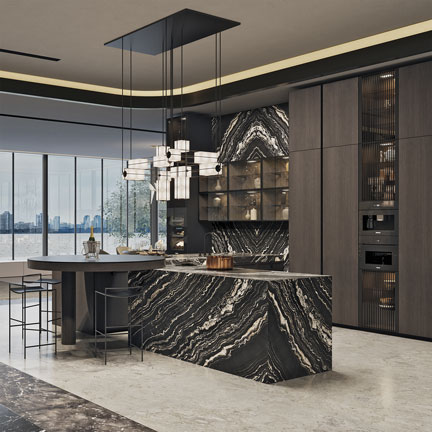 Blending materials, shapes, and colors to create an emotionally compelling kitchen experience, MONDIAL transcends the boundaries of kitchen design